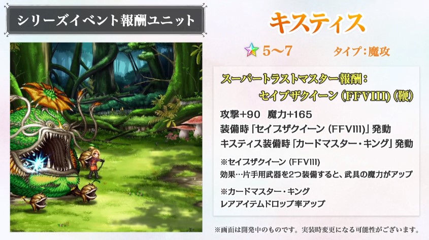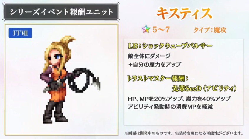 【FFBE】【解析】FF8『キスティス』のスキル詳細が判明!?火雷水属性のケイオス系青魔法アタッカー!? 2019年12月27日 カテゴリ:解析新キャラクター トラマス・スパトラ 【【FFBE】【解析】FF8『キスティス』のスキル詳細が判明!?火雷水属性のケイオス系青魔法アタッカー!?】の続きを読む タグ :#解析#FF8#キスティス#ケイオス系