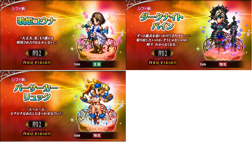 【FFBE】30日よりFF10-2の『ユ・リ・パ』が登場!新規NVが3体も... 2022年04月28日 カテゴリ:新キャラクターNeoVision 72 名前【エクスデス速報】:2022/04/28(木) 11:42:43.14 ID:hq9ユリパガチャは熱いけど3体はさすがにきちぃ 【【FFBE】30日よりFF10-2の『ユ・リ・パ』が登場!新規NVが3体も...】の続きを読む タグ :#FF10-2#ユウナ#リュック#パイン
