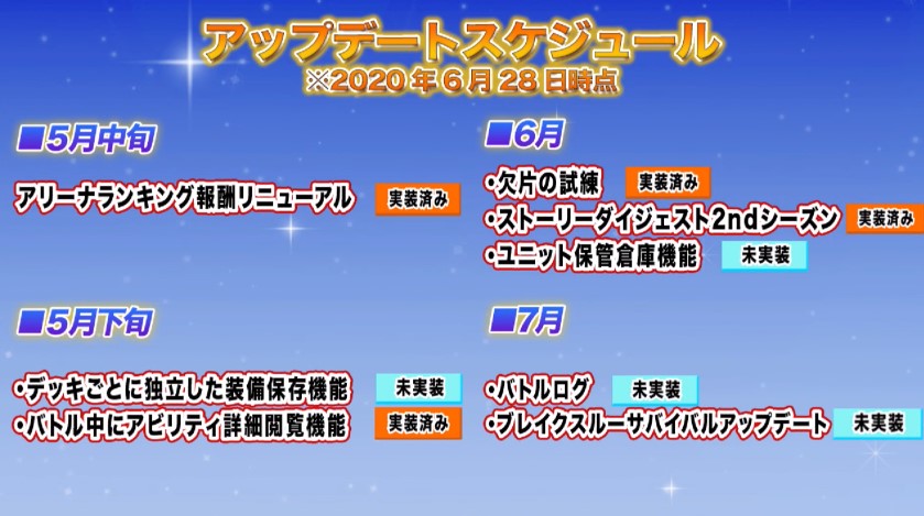 【FFBE】【公式生放送】今後の『アップデートスケジュール』が発表!『ユニット保管庫』や『バトルログ』についても続報が! 2020年06月28日 カテゴリ:公式生放送FFBE 【【FFBE】【公式生放送】今後の『アップデートスケジュール』が発表!『ユニット保管庫』や『バトルログ』についても続報が!】の続きを読む タグ :#公式生放送#ロードマップ#ユニット保管庫#バトルログ#ブレイクスルー
