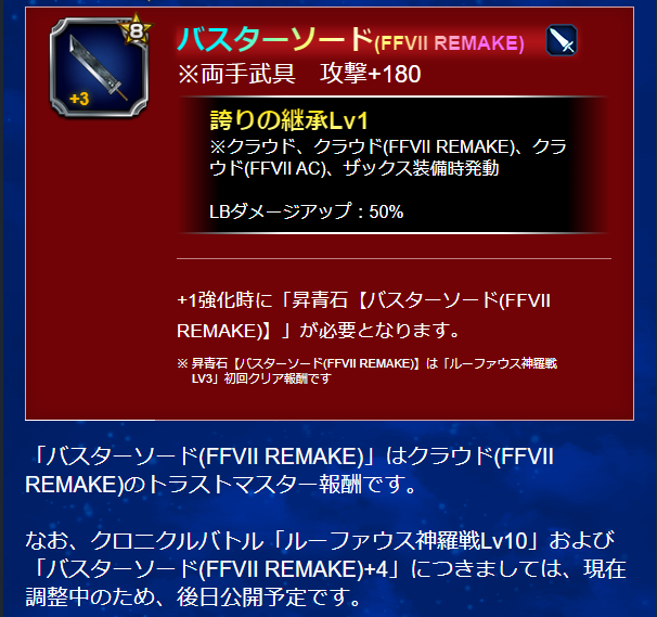 【FFBE】『バスターソード+4』と『レベル10』を早く実装して! 2021年04月18日 カテゴリ:クロニクルバトル装備 322 名前【エクスデス速報】:2021/04/14(水) 16:26:05.32 ID:z1u なんでバスターソードの強化もったいぶってんだLv10の実装遅すぎてLv9で周回して素材集め終わってる奴たくさんおるやろ 【【FFBE】『バスターソード+4』と『レベル10』を早く実装して!】の続きを読む タグ :#クロニクルバトル#クラウド#バスターソード#勲章